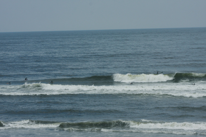 海に着くとちょっと風が入って来たけど胸~頭サイズで時たまましな波が来ていた。