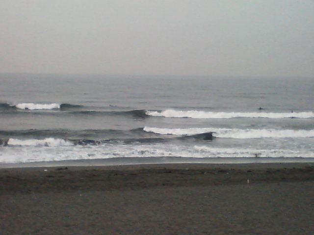 オフショアのスタートです。波は膝ももたまに腰ぐらいです。スモールウエイブ用のボードがよさそう。