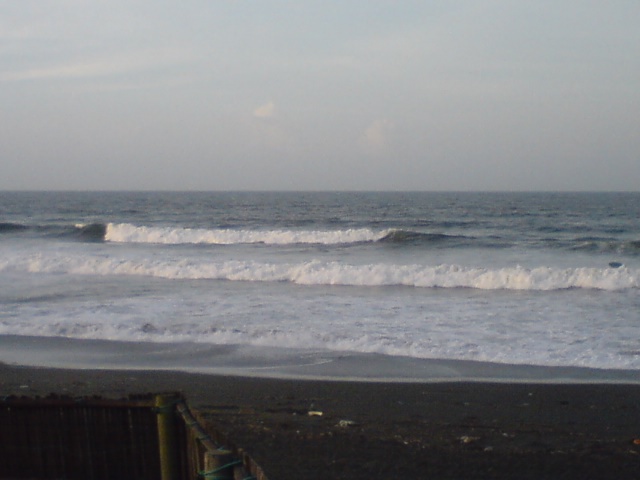 オンショアだがまだサーフィン可能です。サイズは胸前後。