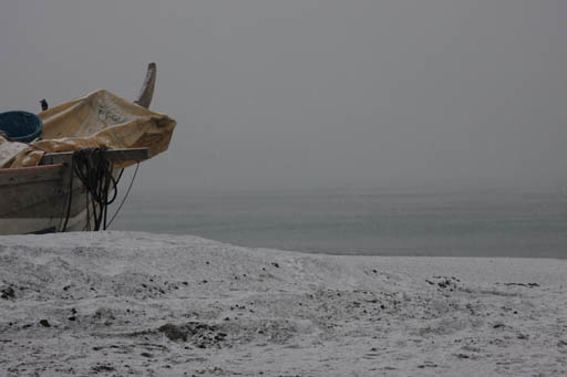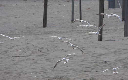 彼らもランチタイム。地引網の残り物を食べにきている。カラスとトンビと取り合う。