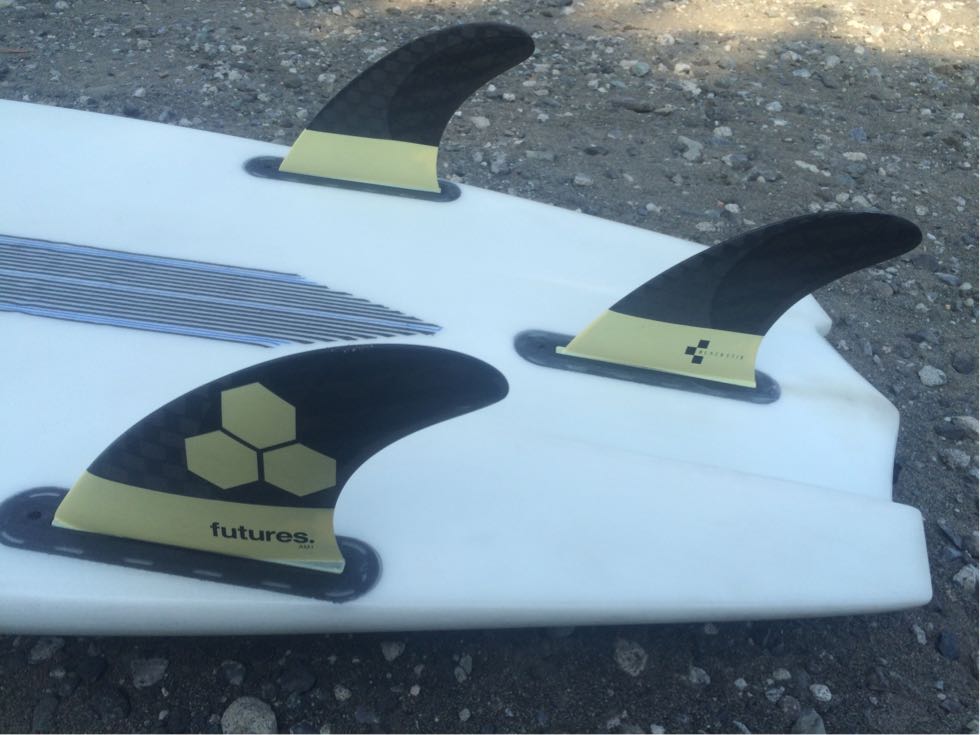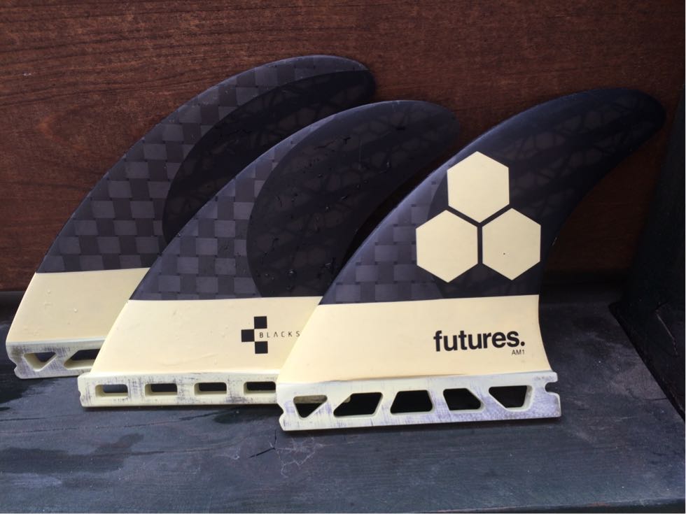 フィンは今年出たお気に入りのモデルAM1のブラックスティックス。