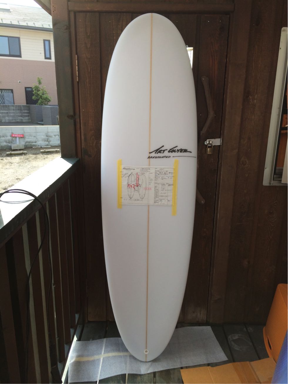 このボードは去年からサーフィンスクールではじめたK君の初のオーダーしたボードです。
