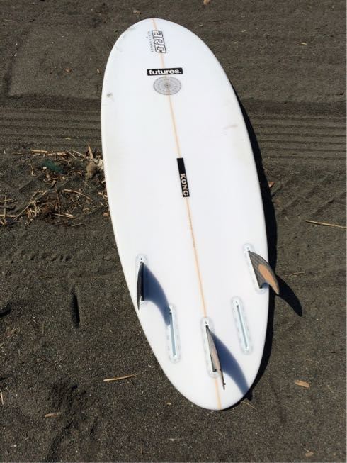 このボードは特にコナミ用ってわけでなく頭サイズのリーフブレイクも意識して作ったモデルですが楽にテイクオフして乗れました。