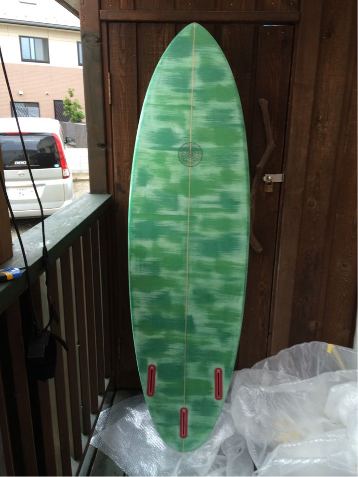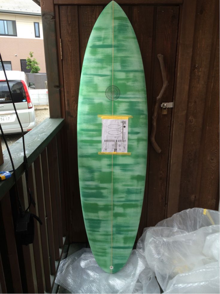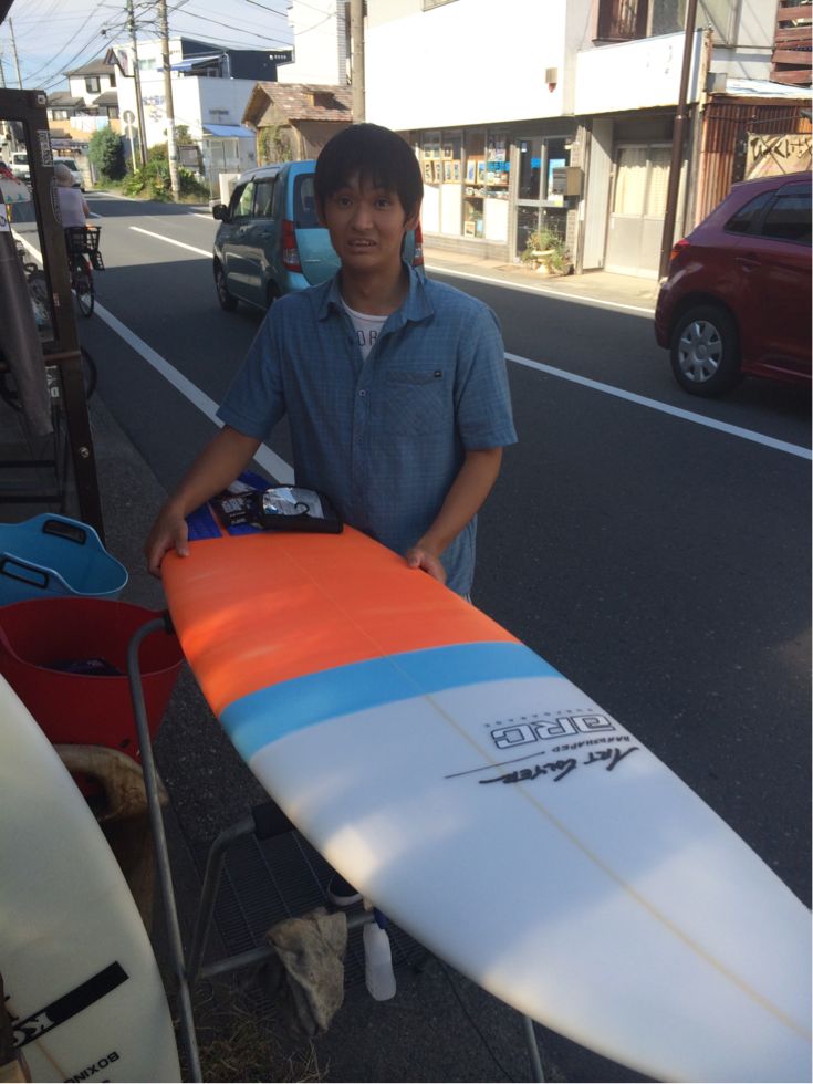 彼はまだ初級者ですが地道にがんばっていて、今迄は長くて重くてっていういわゆる初心者用のボードで頑張っていましたが、今回初めてのカスタムオーダーをしました。