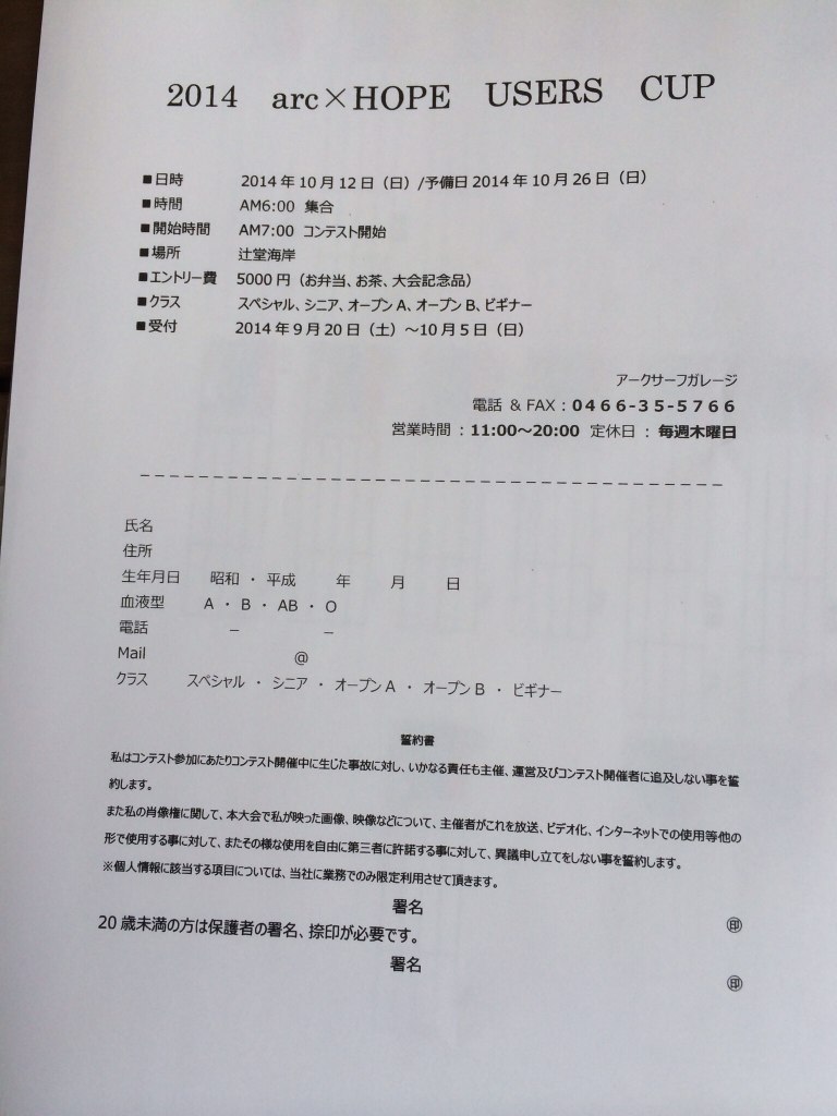 ARC✖︎HOPEカップのエントリー用紙が出来ました。