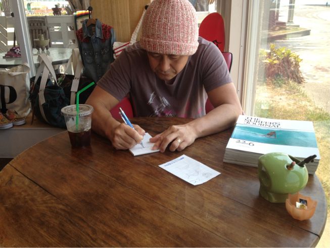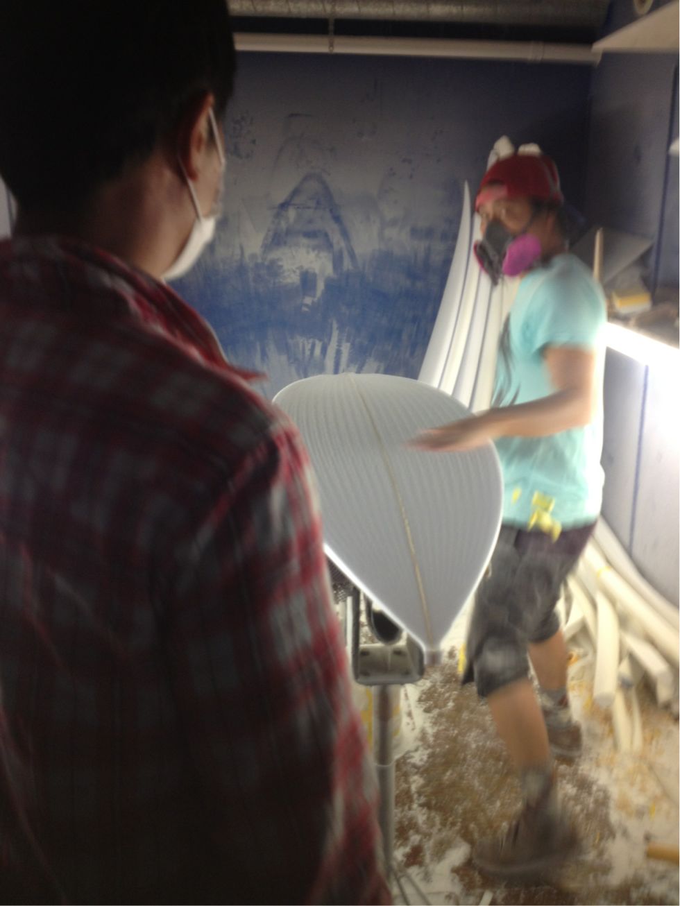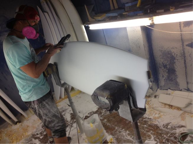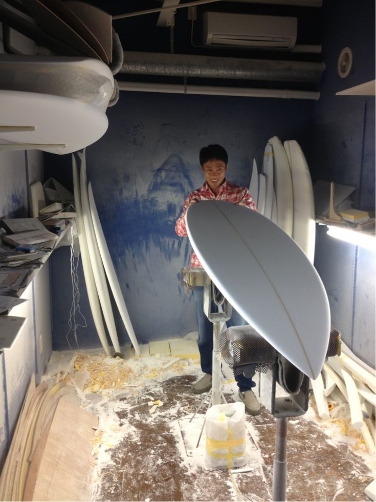 早速シェイパーの小畑くんとボードのミーティング。