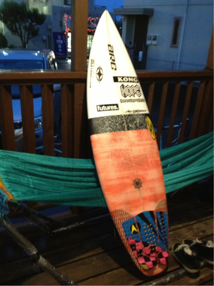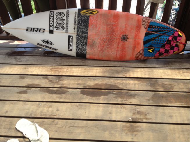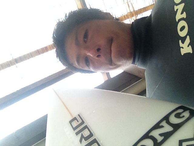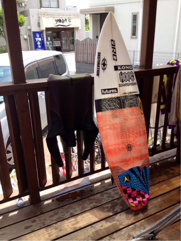 今日は夕方にかけてオンショアで正面左でぼちぼち出来て、海から上がった瞬間にオフショアに変わり場所をショウヨウに移動してチューブありリップも連発出来る波出てました。