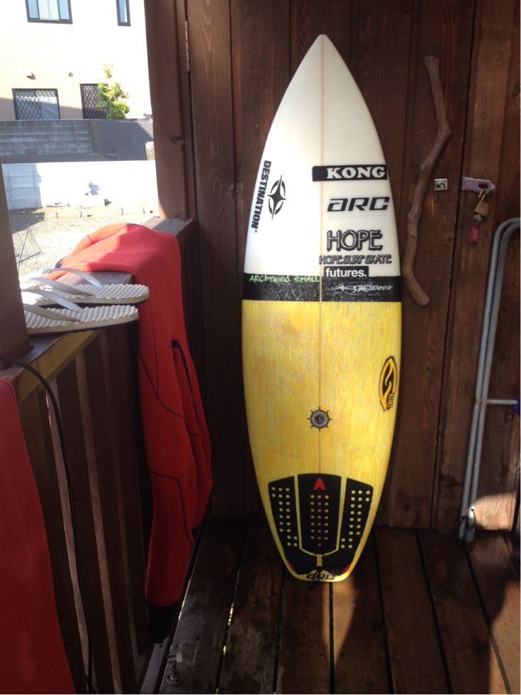 先月浜松で立会シェイプしてきたボードが出来上がってきて、今日意外と腹前後でいいブレイクだったので乗ってきました!