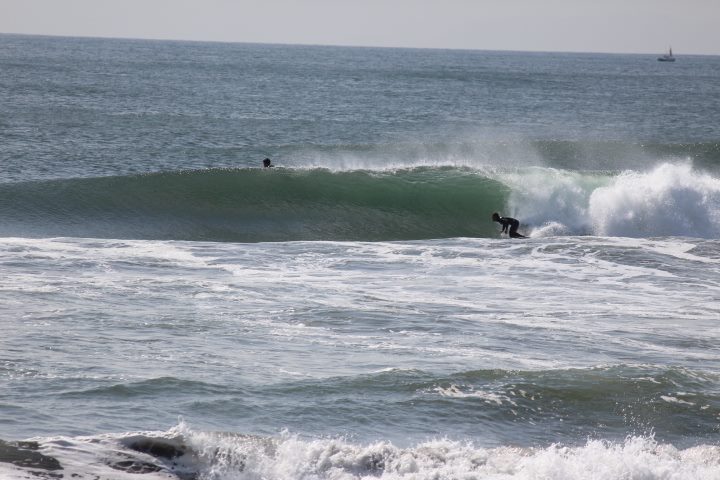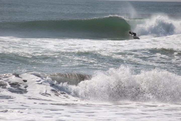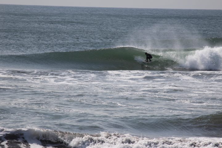 前日に吹いた強力なオンショアで未明に風が変わり朝は頭オーバーありました。