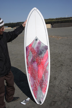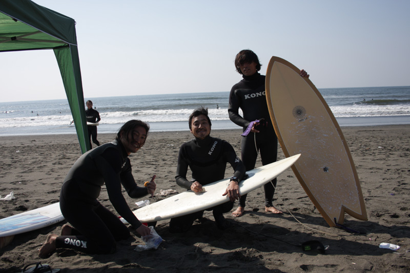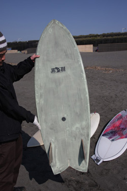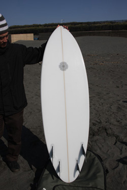 先日の日曜日、浜松にオーダーしていたボードのシェイプに4人で行って来ました。