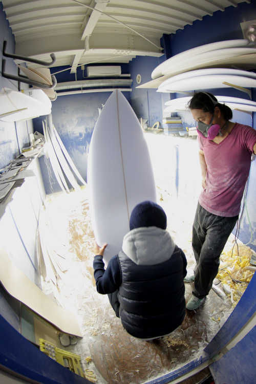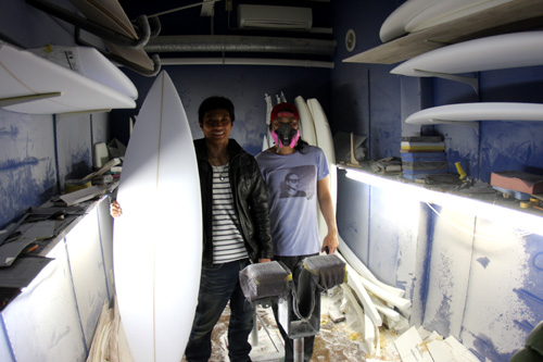 先日、山ちゃんと浜松にボードのシェイプしに行って来ました。