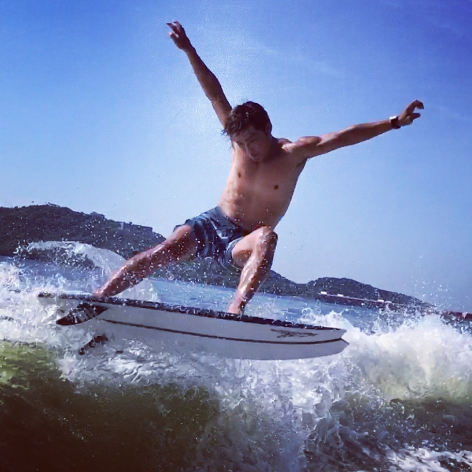 小波からオーバーヘッドまでショートボードの様にリップ、カーヴ、ラウンドハウスカットバックなど普通に出来て、ショートボードより少しゆったり大きく乗れるところが気に入っています!