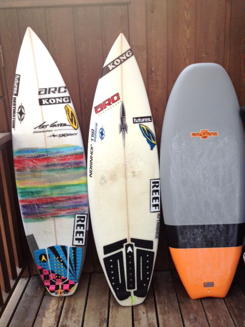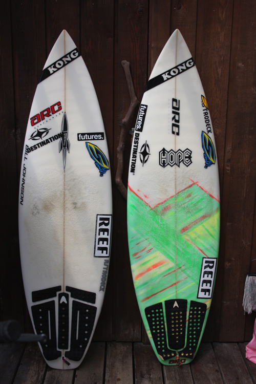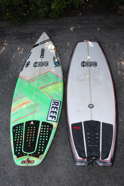 ボードは5’7”ARCBREEDと5’0”ノーノーズ・プロトタイプ。
