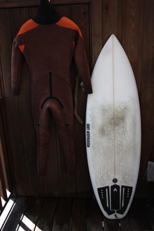 昨日この5’4”北陸モデルに装着してヒザ~モモサイズのスモールウエイブで