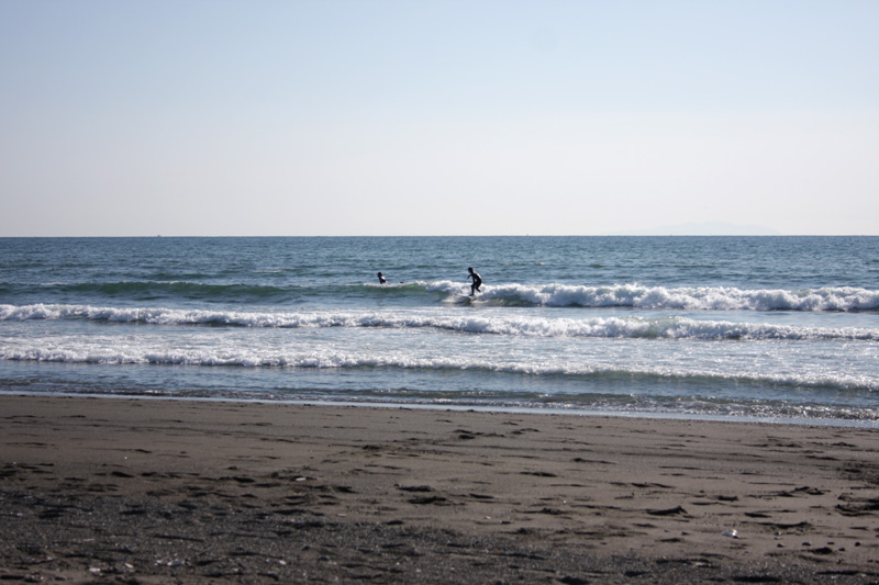 場所は辻堂正面から見える範囲のビーチでサーフボードを揃えてスタンバって