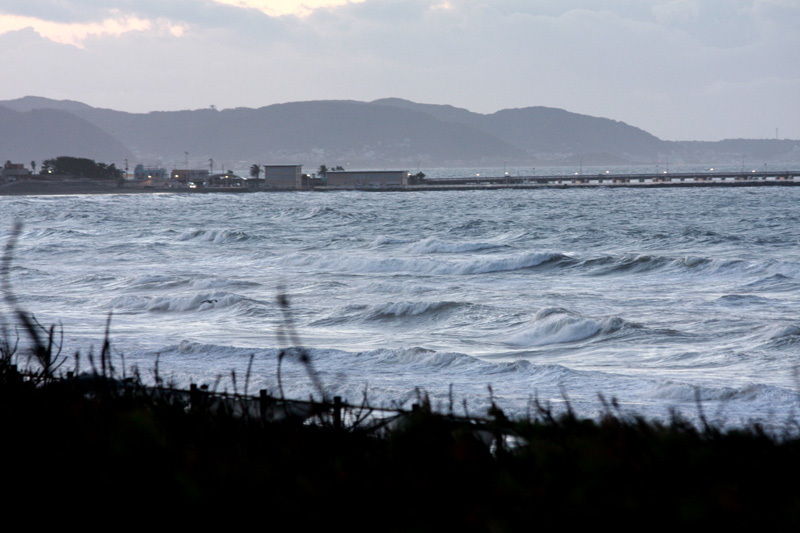 うねりは上がってますが強い風に煽られて抑えられています。