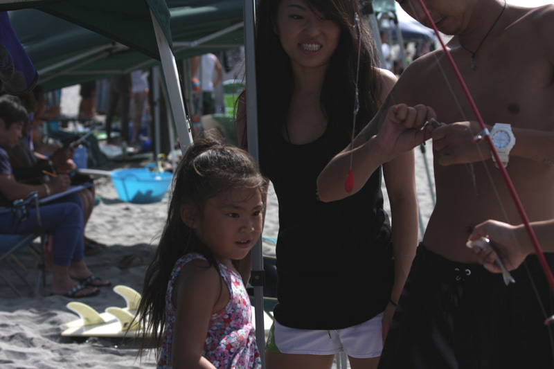湘南藤沢支部の各クラスの代表選手の出番に波打ち際まで行き応援!!