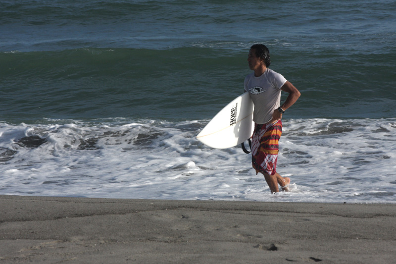 今日も早朝に起きてチェックするとビーチもサイズダウンでオンショア交じり。