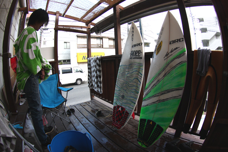 と思っていたらユウイチからTELで今から来るって行ったので午後から一緒にサーフ。