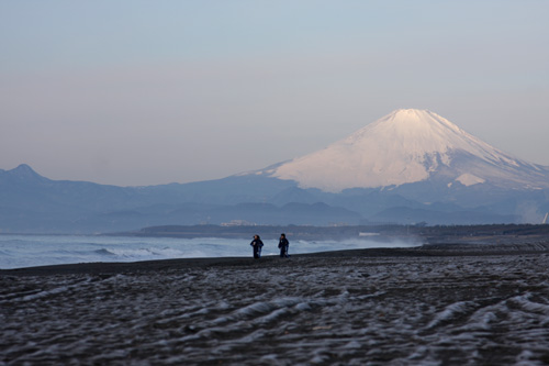 今朝のビーチは凍っていました・・。