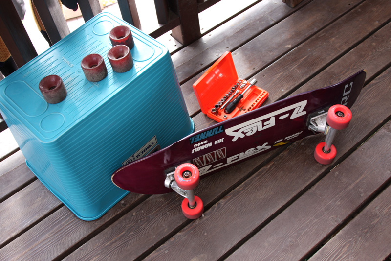 昨日は午後もう一回サーフしたのですがインターバルにアキちゃんのスケート講座。^^