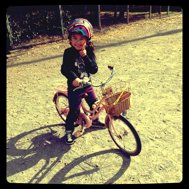 カリンは昨夜サンタに貰ったヘルメットとプロテクターで自転車の練習!!