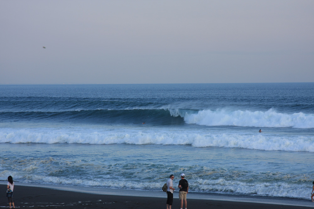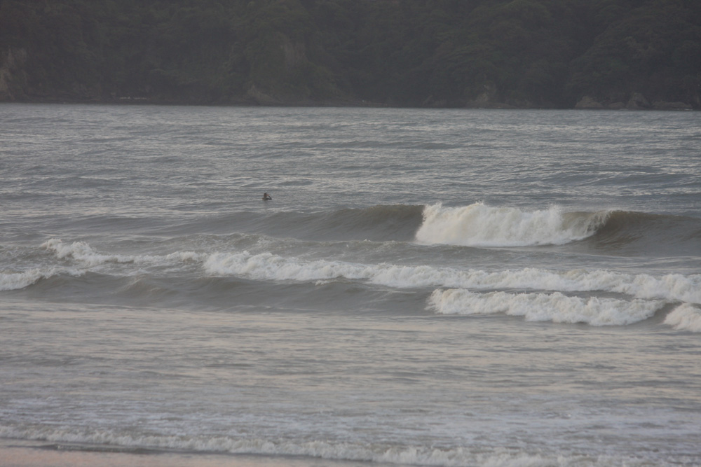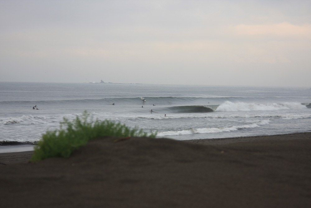 台風スウェルもひと段落して、オンショア吹いていますがビーチもサイズダウン。
