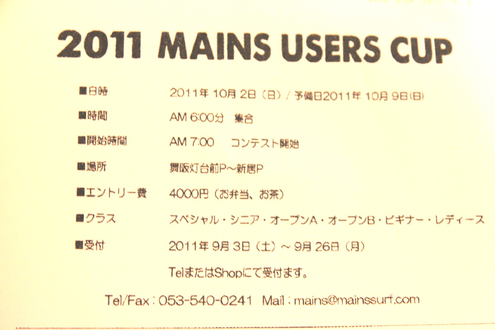来週の浜松でのメインズカップのエントリー希望者居ましたら