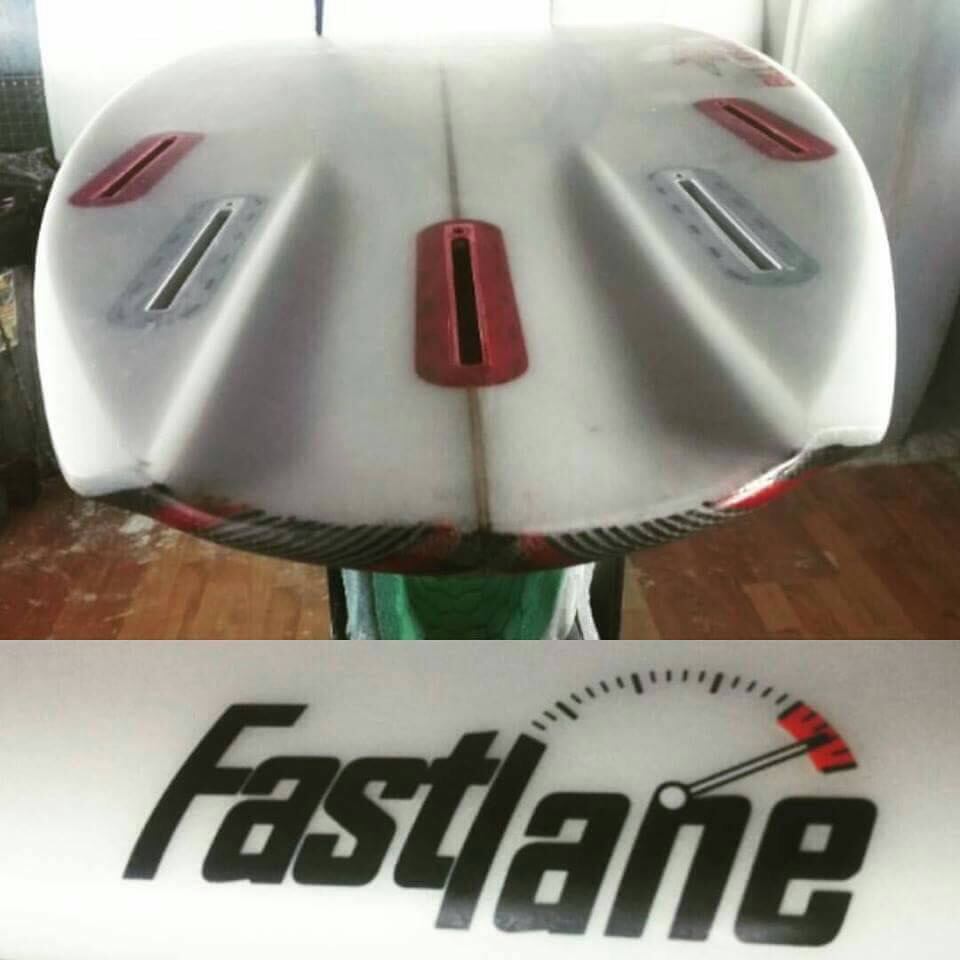 ノーズロッカーはミディアム〜ミディアムロー、センターはシングルコンケーヴでサイドフィンエリアにかけてダブルコンケーヴでテールロッカーはミディアムローでテールエンドはフラット!
