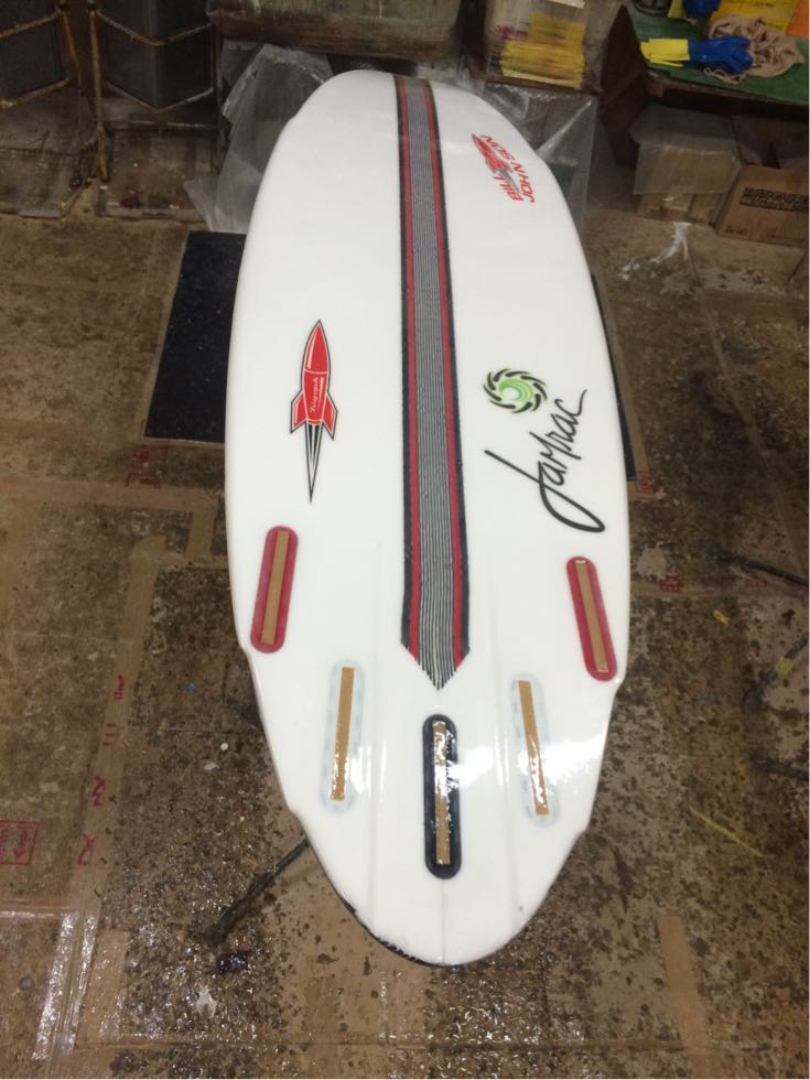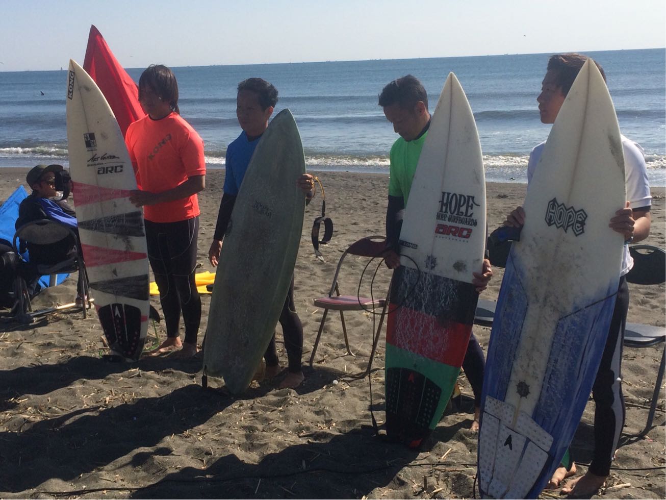 左のボードをビルが前日に静波の腰〜腹の力の無いビーチブレイクで使用したら調子良かった〜って言っていました。