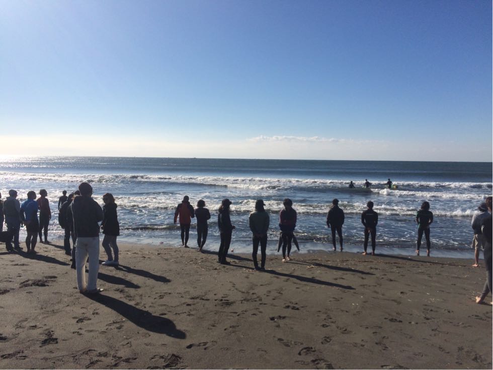朝のセッション後は初級者たちは、波が緩いところで練習しました。