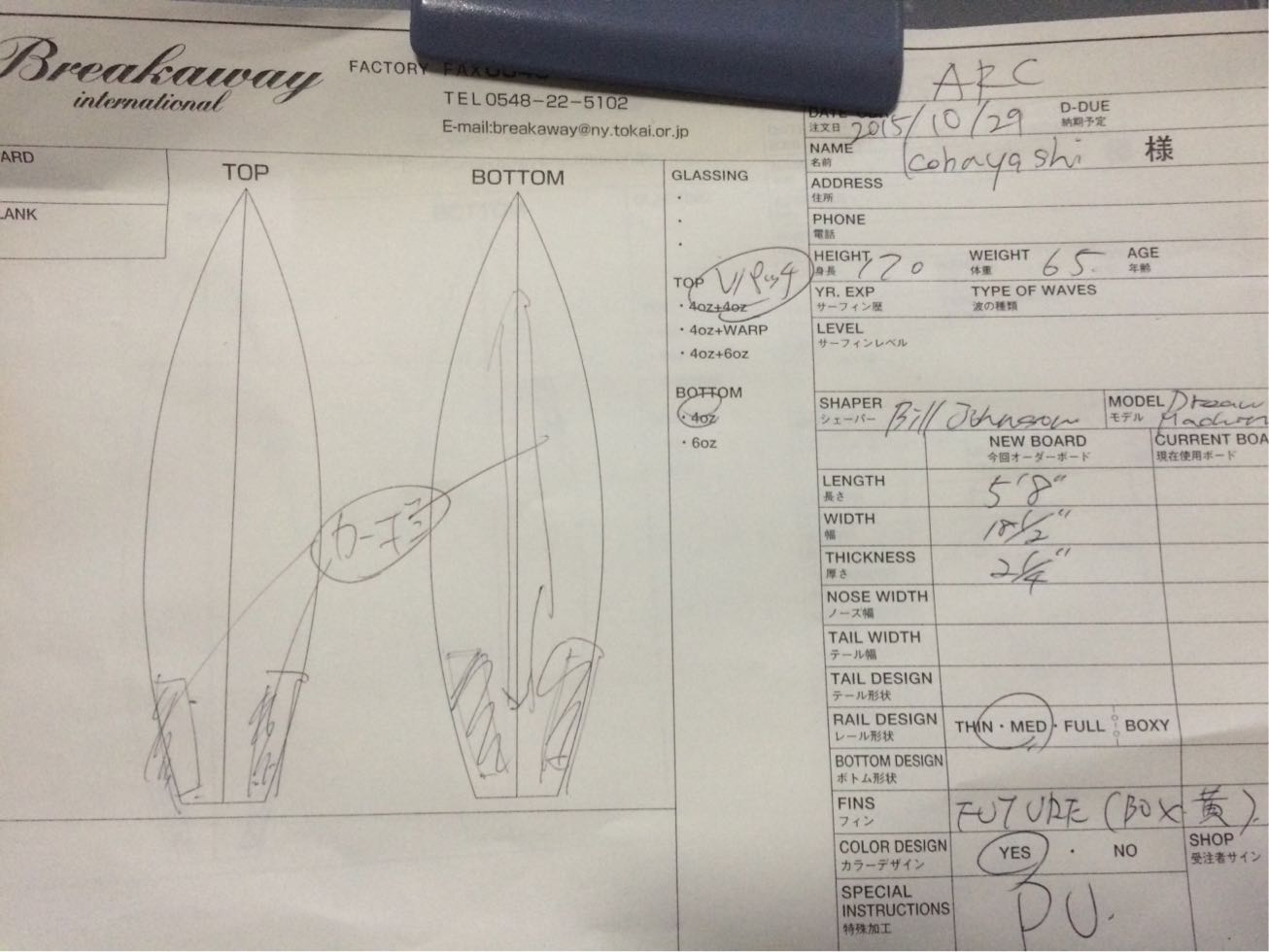Bill Johnson さん立会いシェイプ〜ドリームマシン〜ボードチェック |