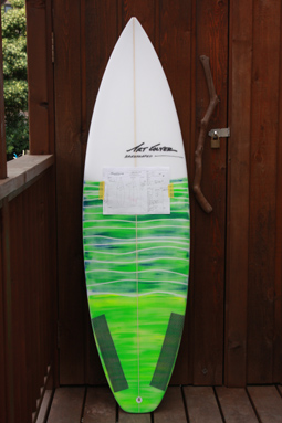 ノーズをロングボードのようにして短く(これは6’6”)オーダーしたものです。