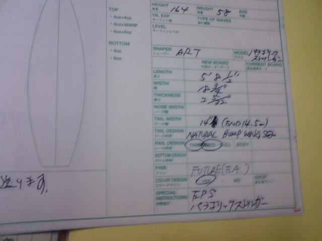 8月上旬静波のファクトリーにてオーダーシェイプ!