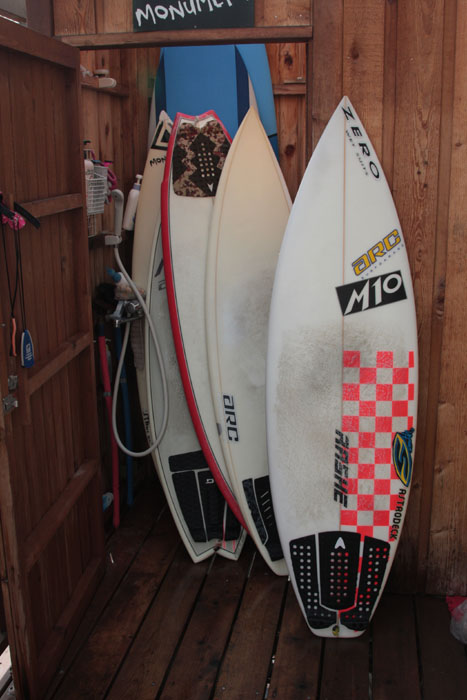 今日は波も小さいのでいつもより大きい7’6”のボードを使用しました。