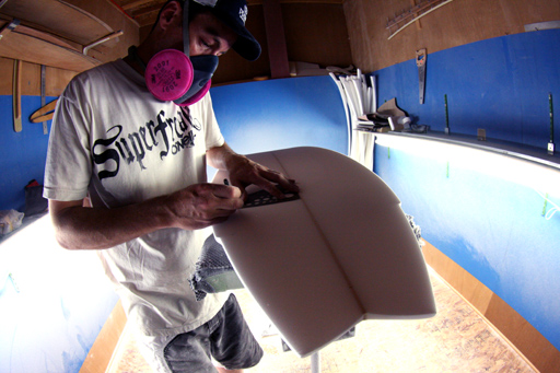 こちらの意見を主張。(笑)ジェフも快くシェイプを開始してちょっとチェックしながら出来ました。
