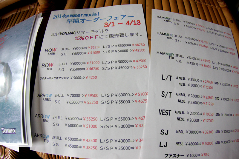 こちらはウエットスーツのVONMACから、