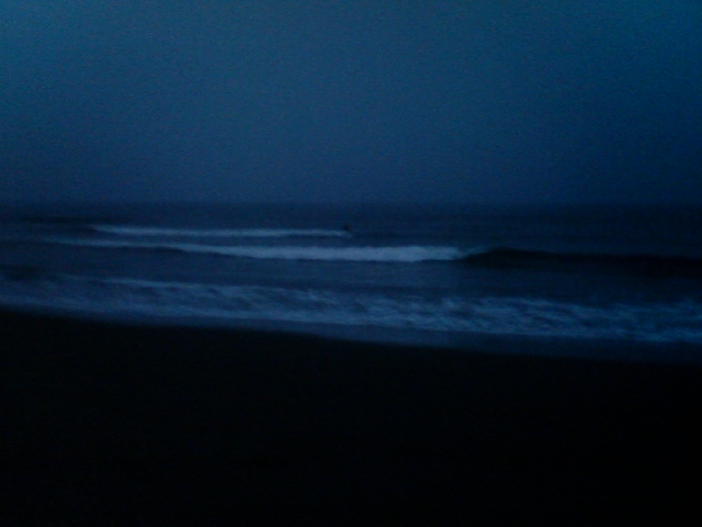 4時15分ユルイオンショア膝~ももぐらい。時々ライド可能な波あります。
