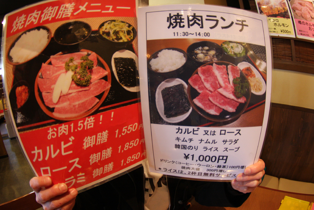 俺は焼き肉ランチで肉大盛りのライスオカワリでナムル、キムチ、韓国海苔、