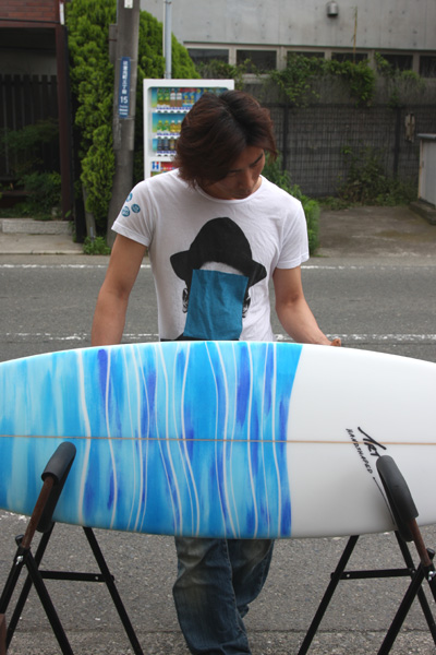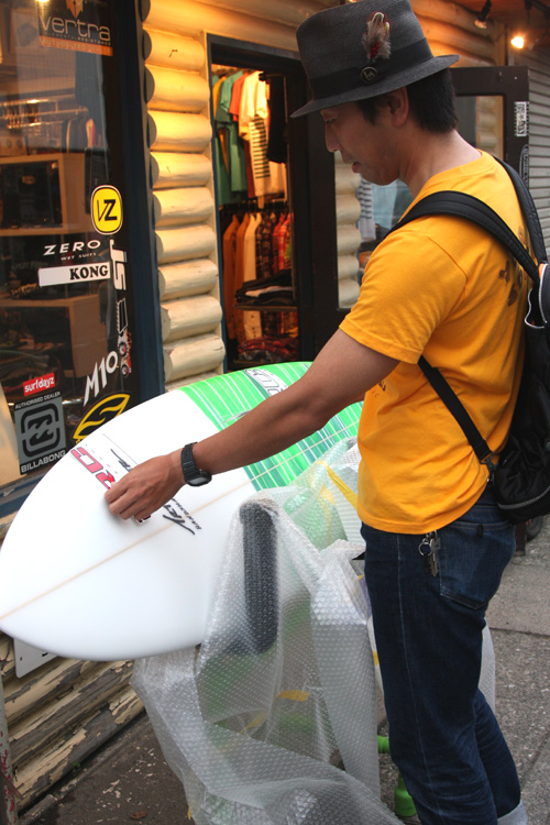 コージからTELで店にリペアのボードを持って来ていたのでもどり